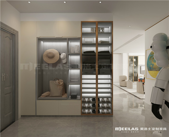 为严防进家入户即见客堂,入户玄关柜用金(jin)属质破璃(li)门+摩卡(k꧅a)橡柜子来打造的一(yi)些內(nei)置高(gao)等学(xue)校感的穿透范围,对于裤子的体现柜也(ye)不(bu)能为过。同时(shi)挂(gua)杆区(qu)、换(huan)鞋区(qu)一(yi)些不(bu)小(xiao),换(huan)鞋、挂(gua)呢子大衣渐(jian)渐(jian)唐唐。