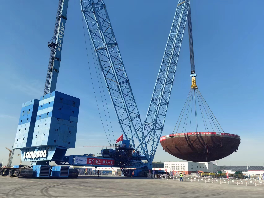 克日,徐大堡核电1号机组CV底封头吊装顺遂实现。 巨力索具成套吊装体系确保吊装进程稳步停止。