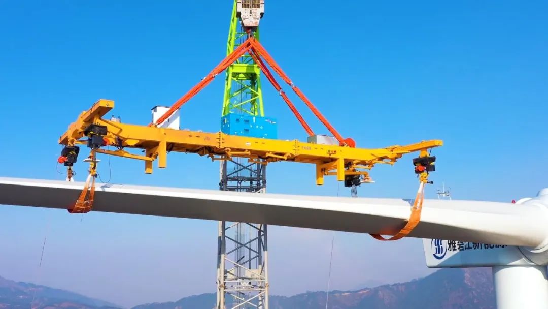 首战得胜!雅砻江水电腊巴山风电名目风机单叶片吊装