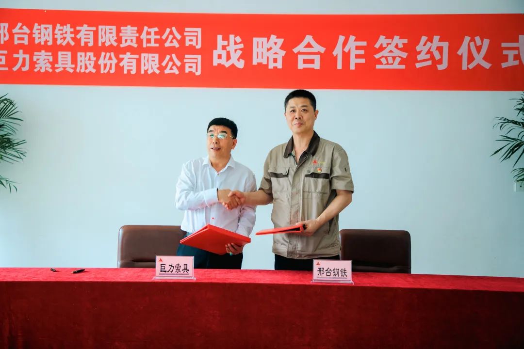 巨力索具与邢台钢铁将以本次签订计谋协作和谈为新的出发点、新的杰出初步,承袭“资本同享、立异同步、上风互补、协作双赢、坦诚互信”准绳,增强手艺交换协作,阐扬各自上风,联手打造佳构名目,配合完成高品德成长。
